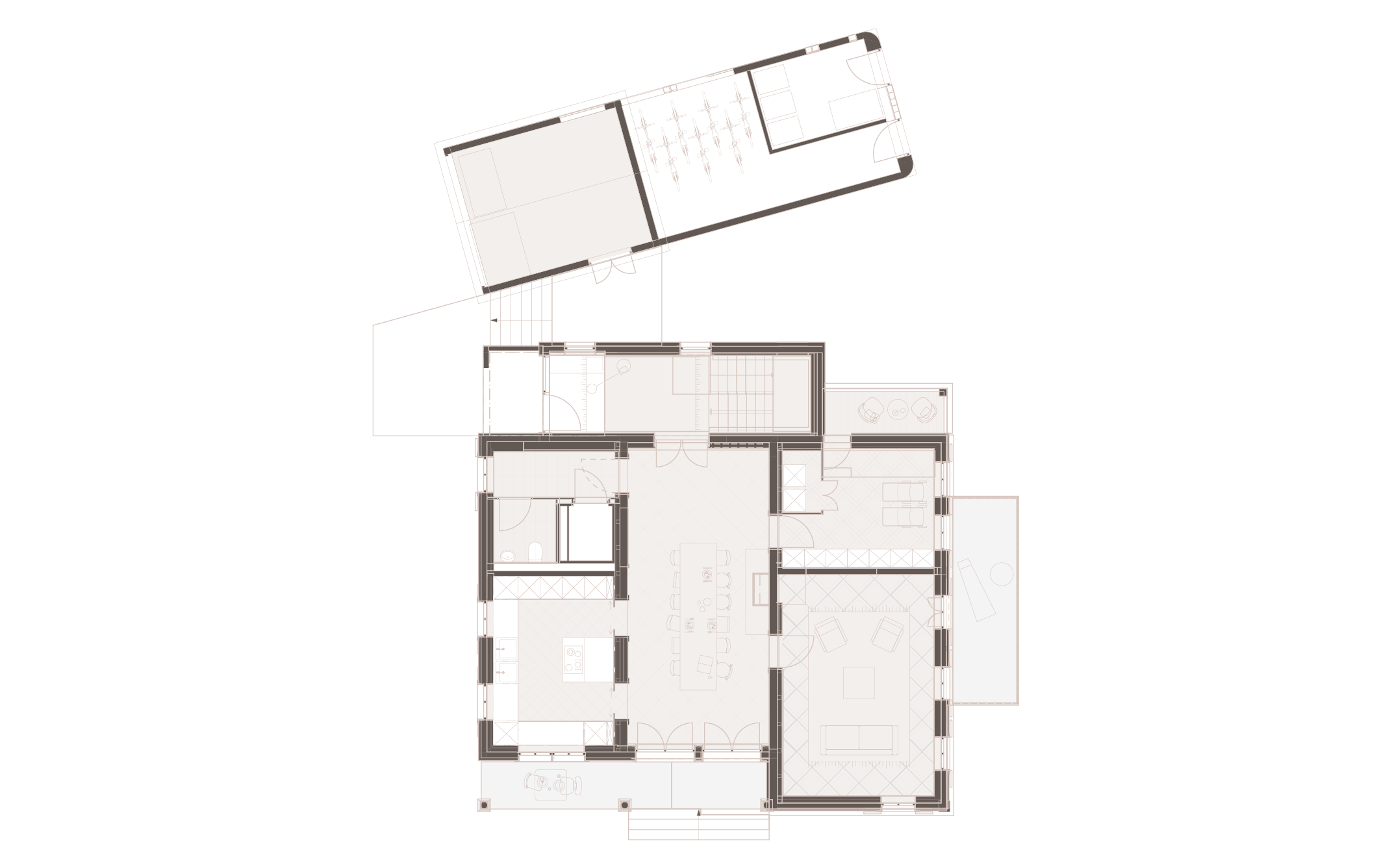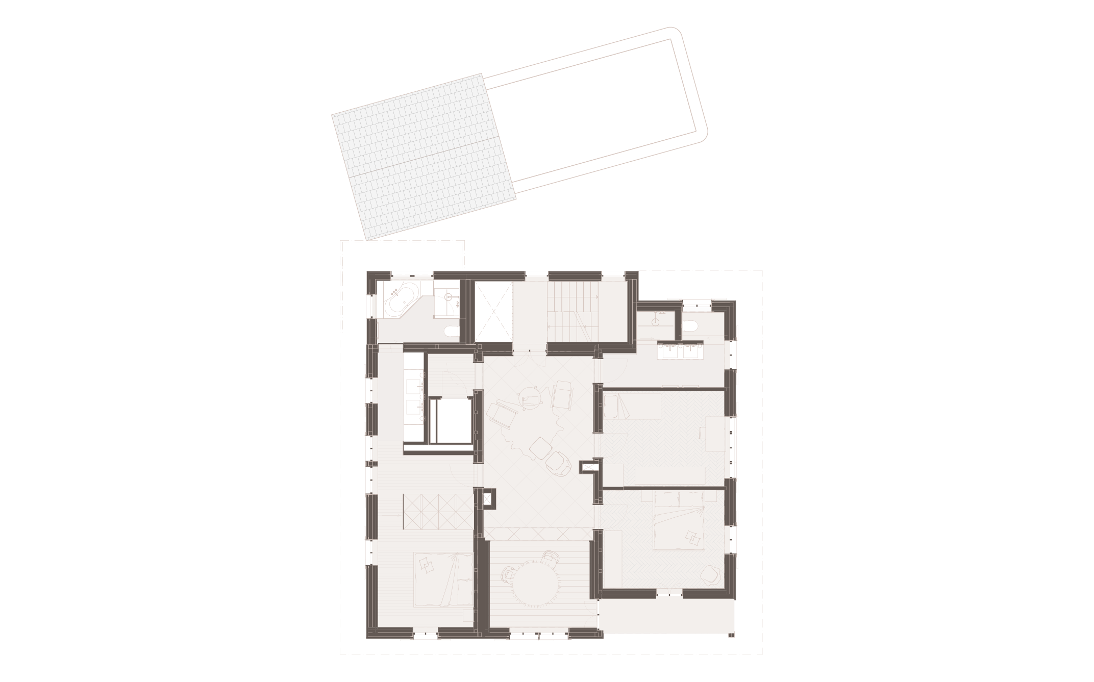 Innerhalb des teils spiralförmig aufgebauten, sowie zweigeschossig organisierten Raumkonzeptes sorgen spannende Raumbeziehungen für ein abwechslungs- und ebenso perspektivenreiches Wohnerlebnis. Indes sind auch alle Neubauten – analog dem Haus «Titlis» durch eine elegante Treppe oder dem persönlichen Homelift erschlossen.